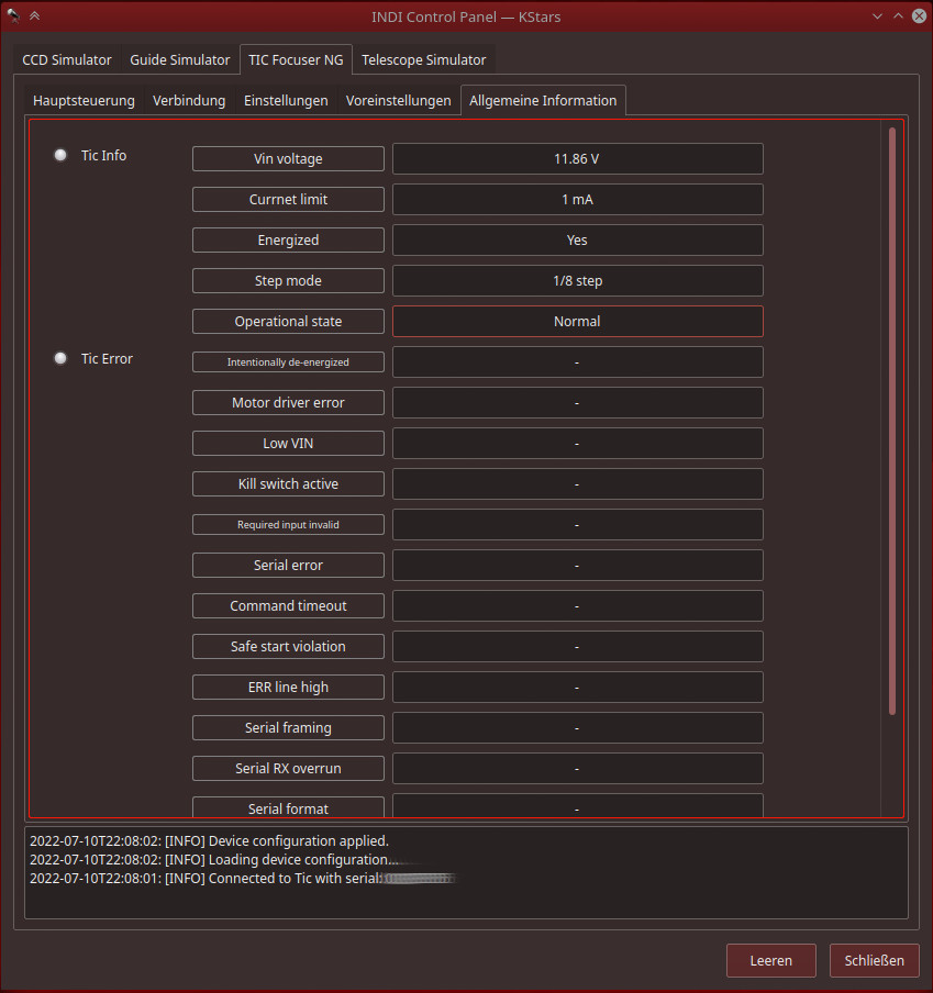 Der Github Link zum ASCOM-Treiber wird für den Windows User sicherlich sehr hilfreich sein: ASCOM-Pololu-Tic-Focuser