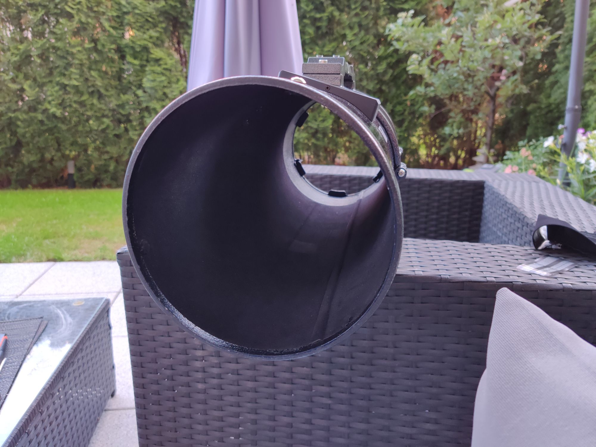 Der Newton Tubus wurde mit Velours ausgekleidet. Nach einem fehlgeschlagenem Versuch, die Innenflächen mit Antireflexlack zu streichen, war das wohl der letzte Versuch das Licht zu bändigen. Aber... Das hat gut geklappt und der Effekt ist wirklich gut! Da entsteht ein "schwarzes Loch" :)