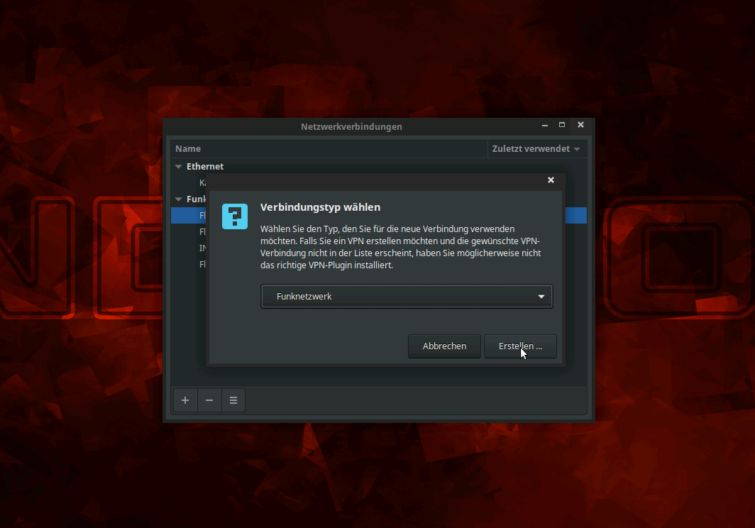 Wähle im Auswahlmenü Funknetzwerk aus und dann auf Erstellen