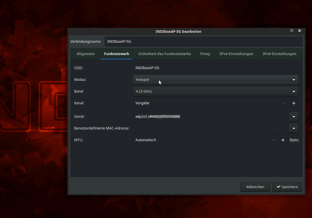 Ganz oben kann ein eindeutiger Name des Netzwerkprofils eingegeben werden z.B. Hotspot oder INDIboxAP oder was auch immer.