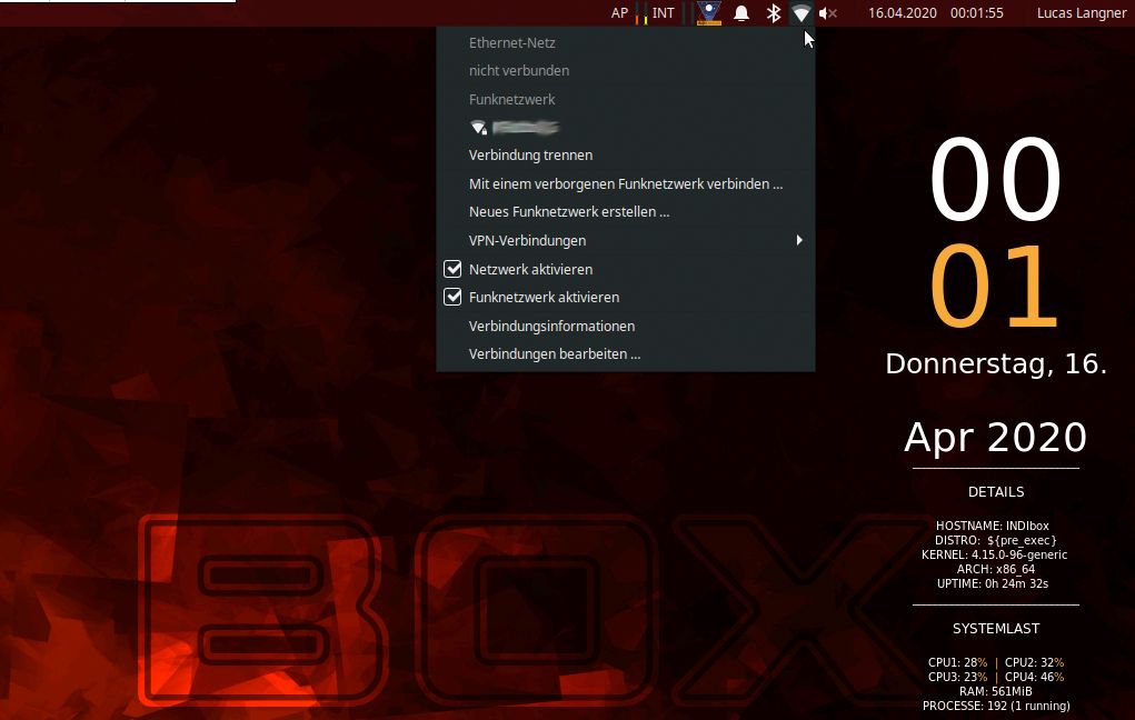 Wenn das Xubuntu Live System gestartet ist, richte dir eine Netzwerkverbindung ein, für WLAN genügt ein Klick auf das WLAN-Symbol in der Leiste um das eigene WLAN auszuwählen. Dann noch das WLAN-Passwort eingeben und fertig. Bei LAN muss nur das LAN-Kabel eingesteckt werden und das Netzwerk läuft. DHCP im Router vorausgesetzt, was aber im Normalfall immer so ist. Nun kann Xubuntu auf der Festplatte installiert werden. Ein Doppelklick auf das Install Icon und schon geht der simple Installationsprozess los. Nach ~15 Min. ist das Betriebssystem fertig installiert und kann das erste mal gebootet werden.