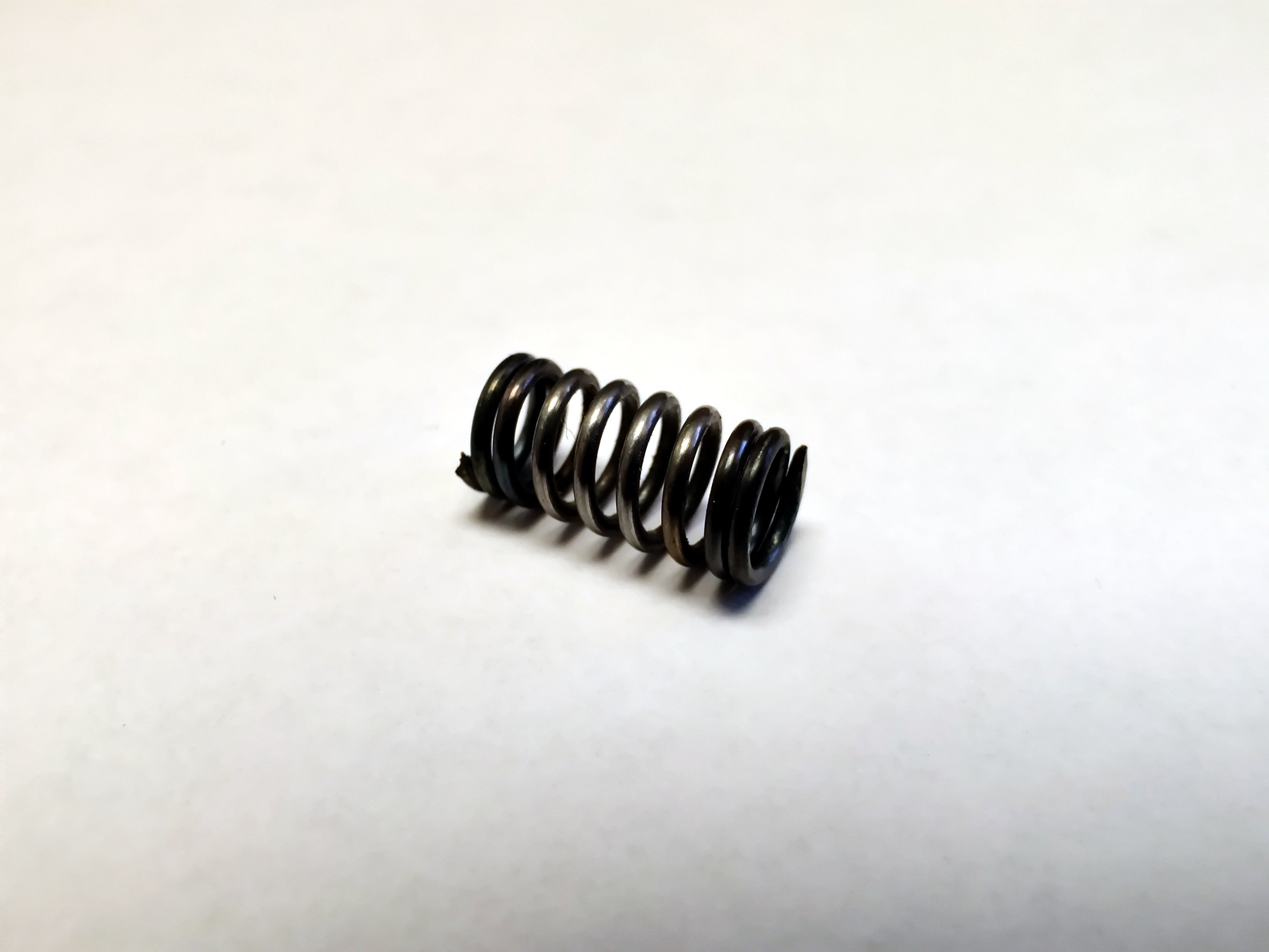 Eine 6mm Feder mit genug Druck damit das Messingteil nicht verloren geht wenn die Prismenklemme offen eingelagert wird. Die Druckplatte sollte sich auch zuverlässig aufrichten können, es wird sonst unangenehm wenn man das schwere, unhandliche Teleskop im dunklen in die Prismenklemme hievt. |
