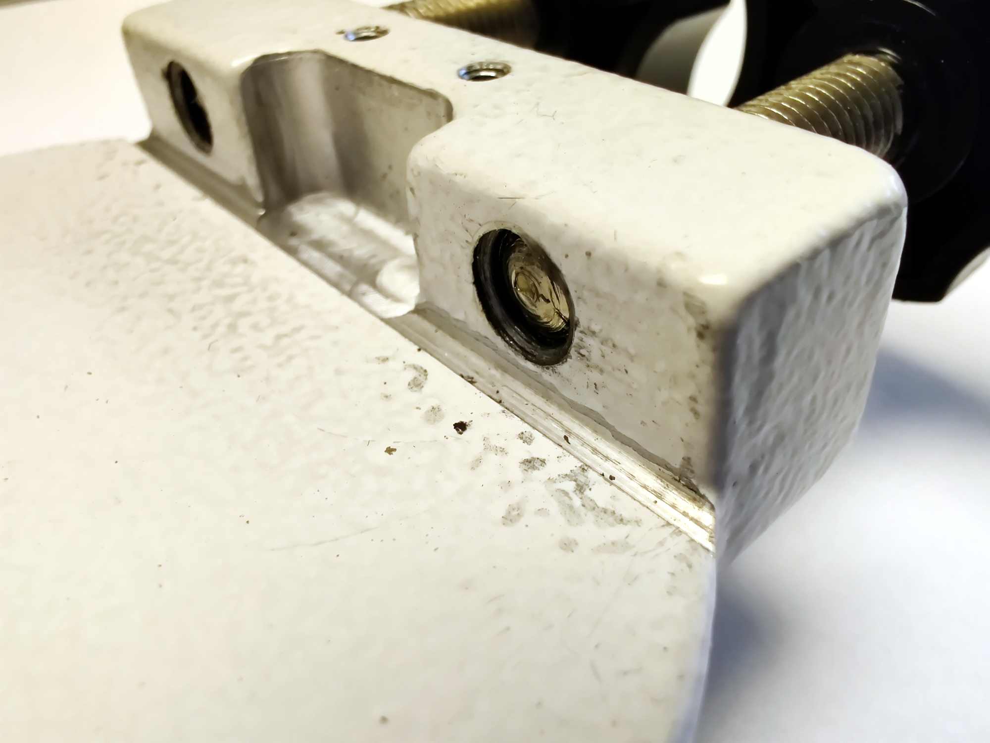 Die HEQ-5 Montierung hat eine recht primitive Prismenklemme mit der man sich die Prismenschiene schnell ruinieren kann. Die beiden Rändelschrauben fressen sich in das Material der Prismenschiene und hinterlassen hässliche Abdrücke...