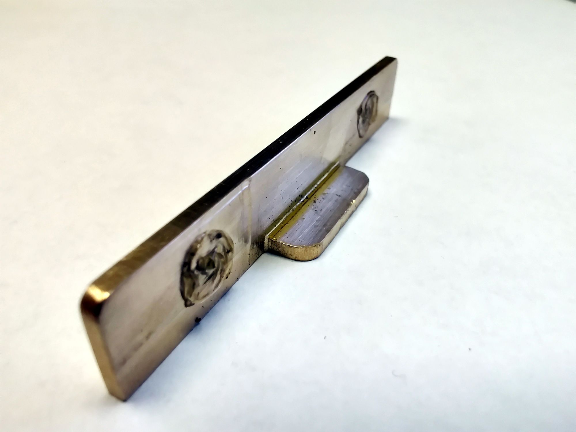 Mit nur 3 Bauteilen und etwas Fräsarbeiten geht das auch relativ elegant. Die 3 Bauteile sind ein L-Winkel aus Messing, eine Feder und ein Deckel aus Edelstahl. OK, zwei M3 Schrauben waren dann auch noch nötig :)