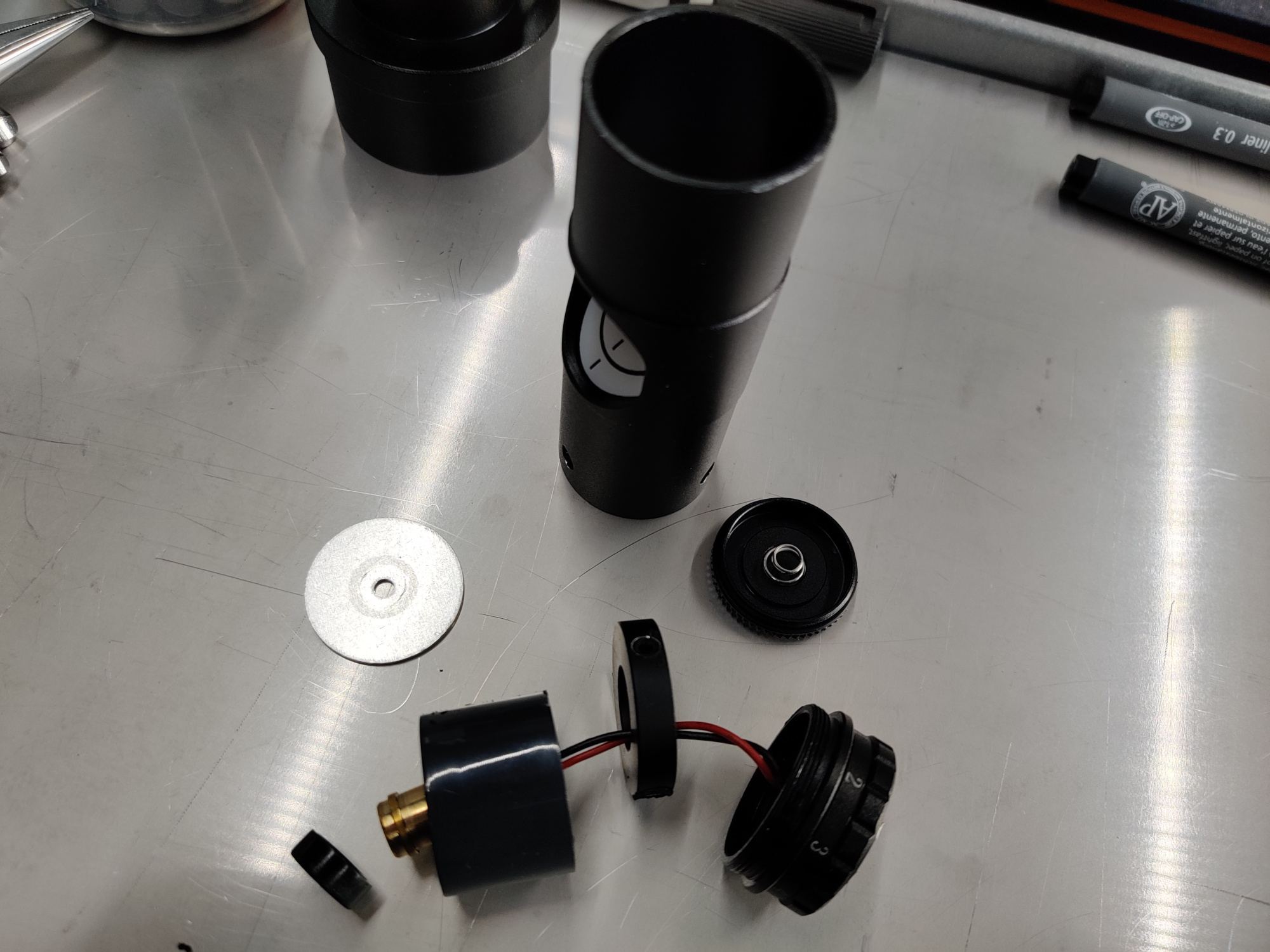 Das Thema Justierlaser lässt mir schon eine Weile keine Ruhe, das war jetzt der erste Schritt zur besseren Kollimation, ein weiterer Schritt ist schon in der Pipeline...